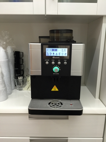 とても、キレイで新しく大きな事務所で、白を基調としたデザインのすっきりしたキッチンスペースがありまして、コーヒーマシンもそちらに設置させて頂きました。